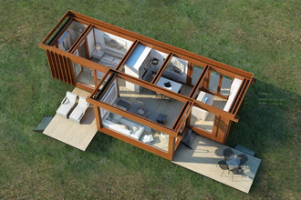 Экологичный быстровозводимый дом, который со временем может расти с помощью добавления дополнительных сегментов вбок и даже вверх, до двухэтажной версии.